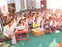 Pleasure-with some library's fund ,we buy eletric generator and we give it to one village on the way to Mont Popa for the students and villagers. On that day we offer rice soup to all student . And at another village on the way to Salay & Chauk, we offer exercise books to the students.